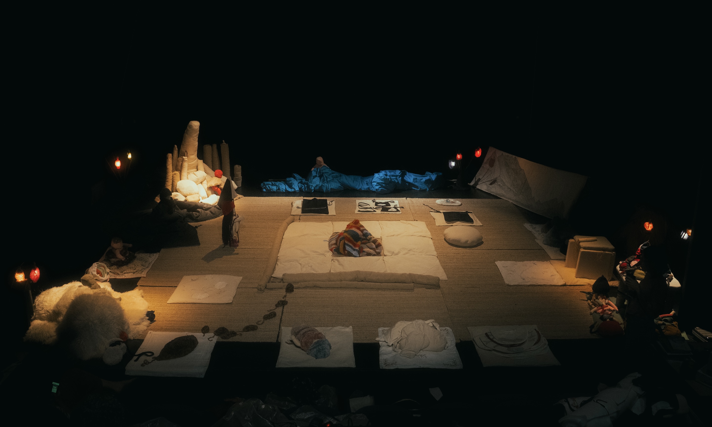 Entre poétique des corps et composition textile, Panoramique n°3 - LES GRANDES ÉTENDUES est une installation en exploration libre pour les bébés et les adultes.