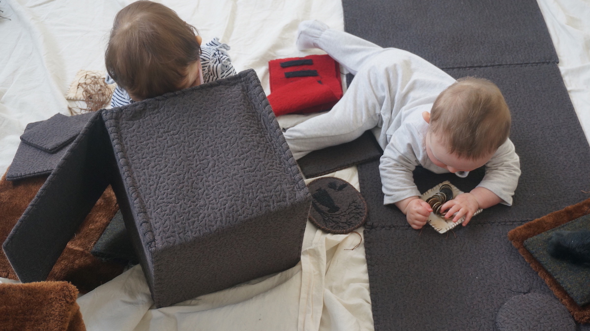 ZOREILLES est une installation pour huit boîtes accompagnées de leurs sept paravents, dont deux boîtes dédiées aux bébés. Ces boîtes peuvent contenir des petits univers à construire, des fresques linéaires, des puzzles, ou de simples tablettes textiles à toucher, regarder, écouter.